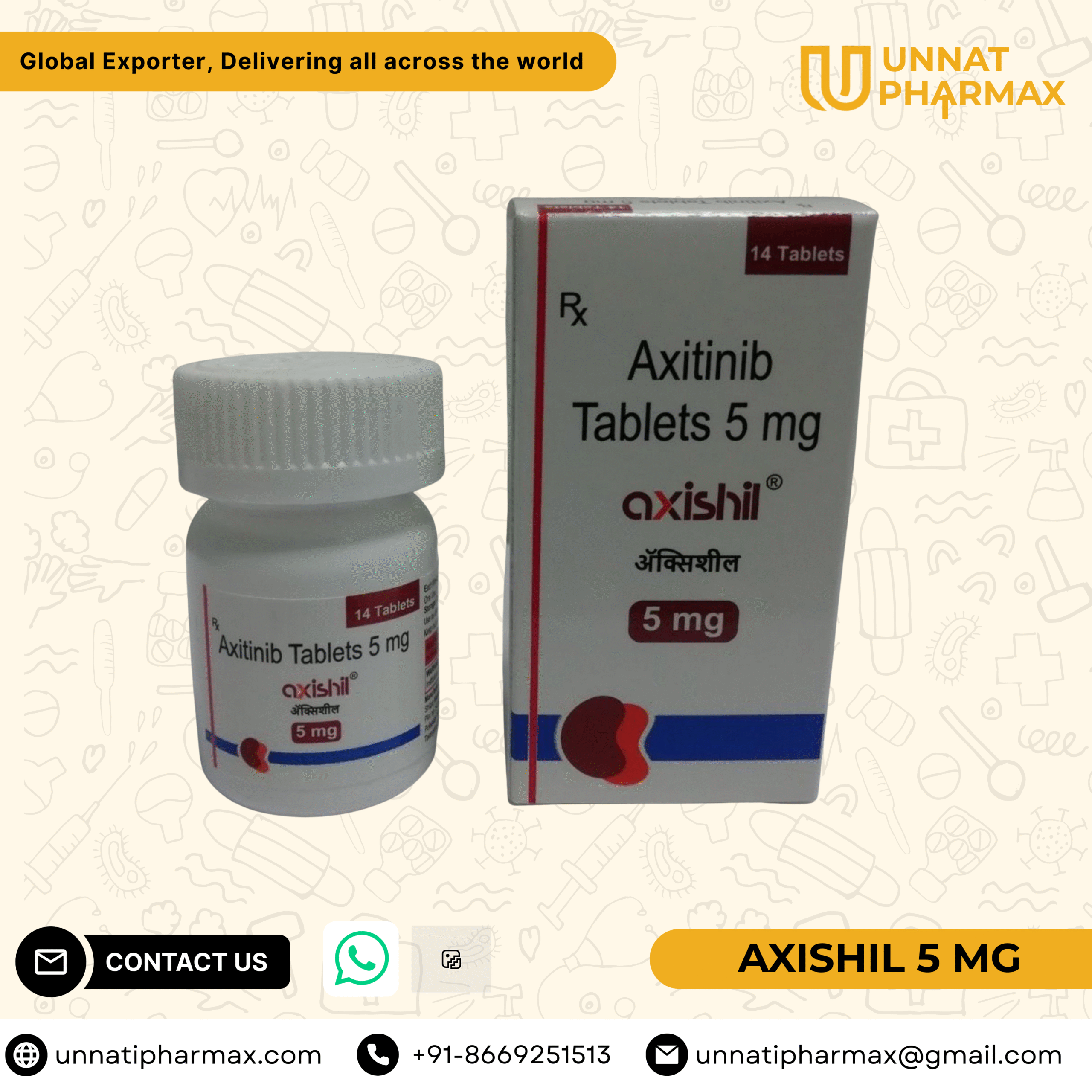 Axishil 5mg Tablet is an anti-cancer medicine used in the treatment of kidney cancer.