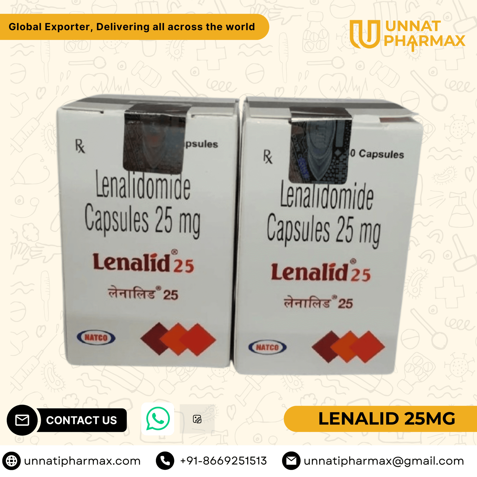 Lenalid 25mg Lenalidomide Capsules for multiple myeloma and blood disorders. Lenalid Lenalidomide 25 MG (Re...