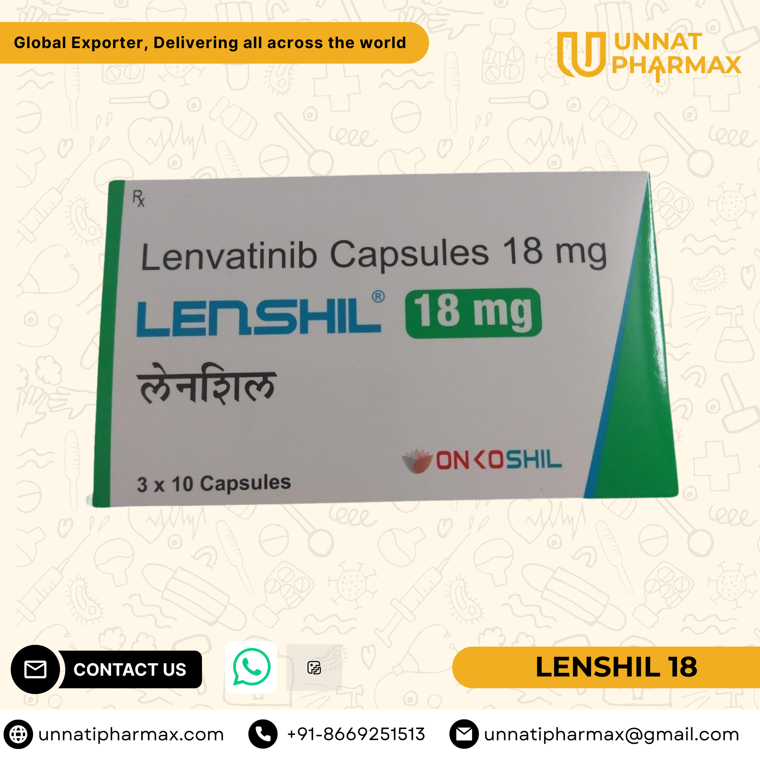 Lenshil 18mg Capsule is used to treat certain types of cancers like differentiated thyroid cancer, liver cancer, kidney cancer, and endometrial cancer. It works by blocking specific proteins that promote cancer cell growth and spread, and reducing tumor size in affected individuals.