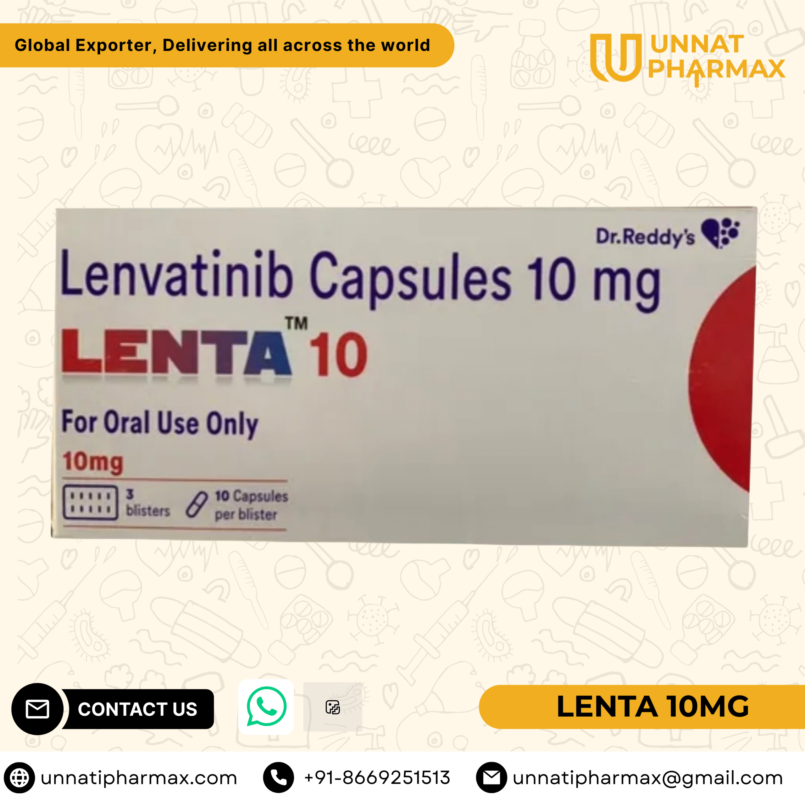 Lenta 10mg Capsule is used to treat certain types of cancers, including differentiated thyroid cancer, liver cancer, kidney cancer, and endometrial cancer. It works by blocking specific proteins that promote cancer cell growth and spread, helping reduce tumor size in affected individuals.