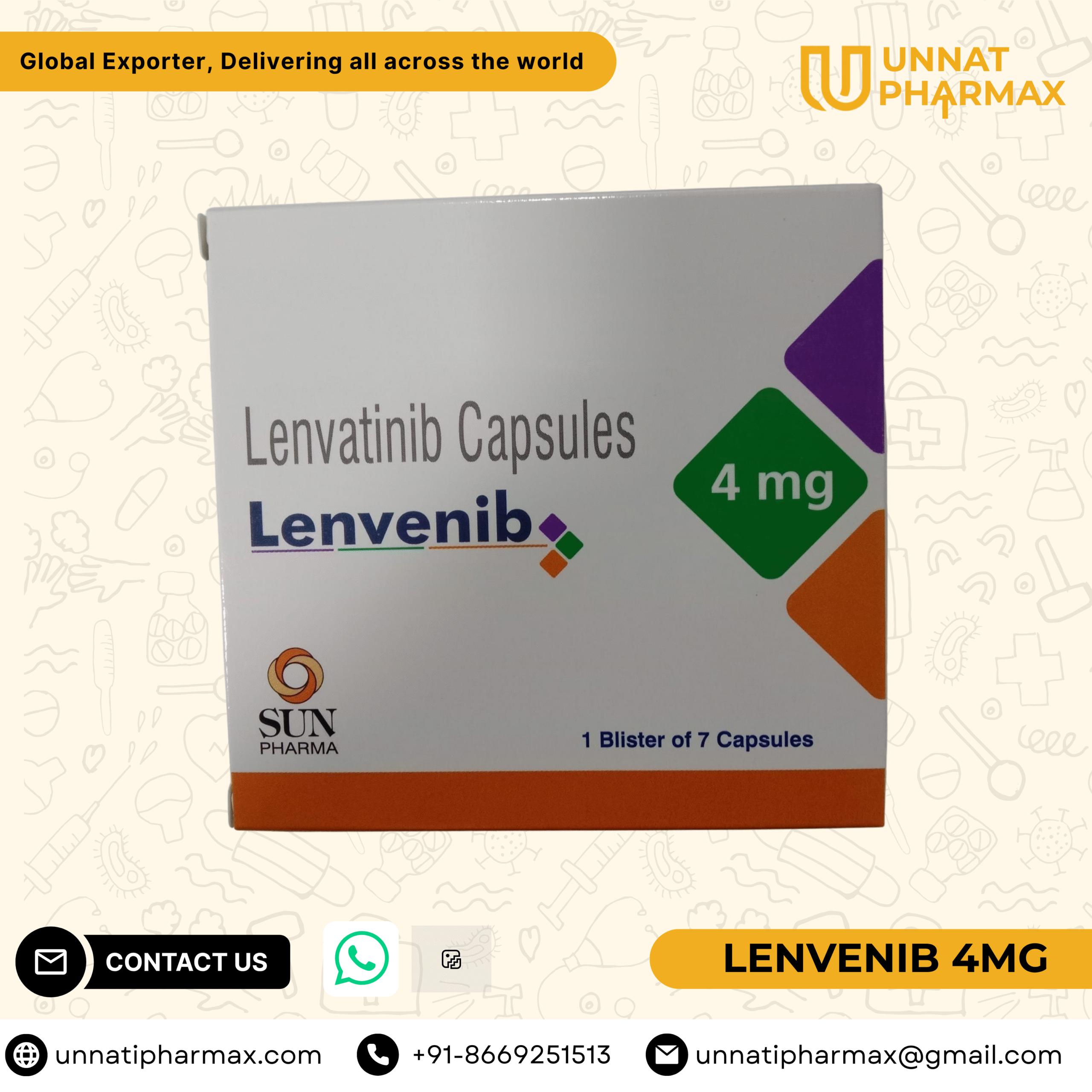 Lenvenib 4mg Capsule is used to treat certain types of cancers like differentiated thyroid cancer, liver cancer, kidney cancer, and endometrial cancer. It works by blocking specific proteins that promote cancer cell growth and spread, and reducing tumor size in affected individuals.
