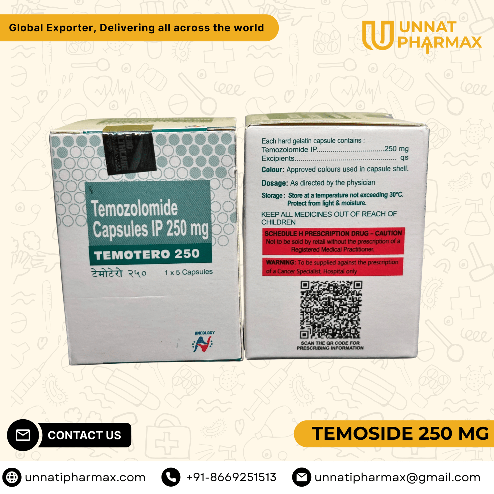 Temotero 250 Temozolomide Capsule for the treatment of brain cancer. Temotero 250 mg Capsule: An Or...